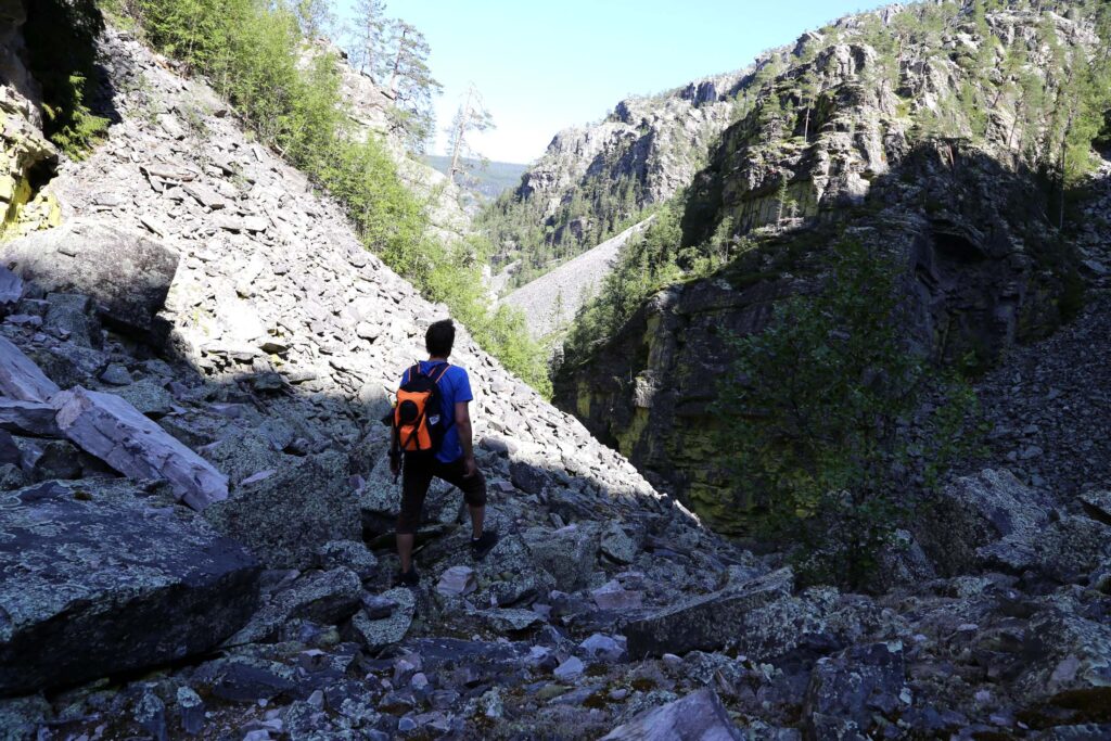 Dette er naturen på sitt beste. Men det er også voldsomt: Når du står i bunnen og krabber over løse steinblokker, finner tydelige tegn på nyere steinsprang, og over hundre meter høye fjellvegger henger truende over deg fra begge sider frister det egentlig bare å komme ut igjen. Les om Jutulhogget her.