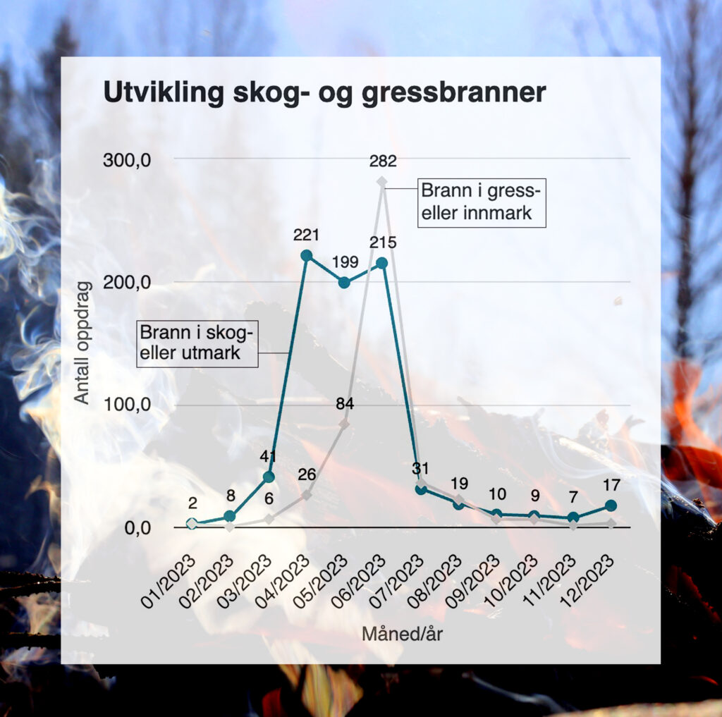 Bare i 2023 var det 1253 skog- og gressbranner i Norge, ifølge tall fra Direktoratet for samfunnssikkerhet og beredskap (DSB).