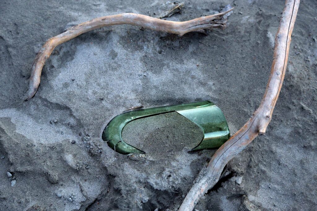 En glassflaske vil leve evig. Om den knuses og deles opp i mikroskopiske deler vil bitene fortsatt være der etter én million år (kilde: Naturvernforbundet).