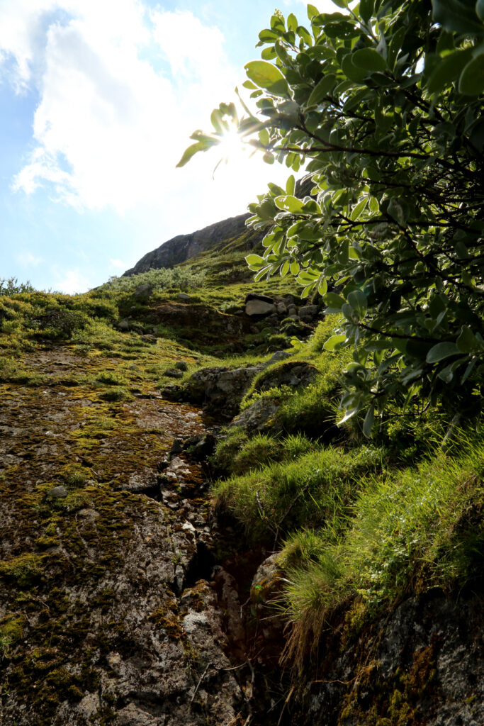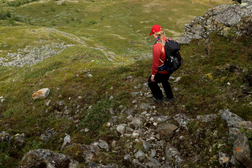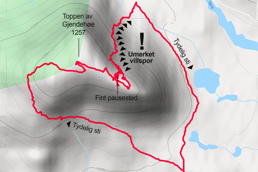 Ta gode veivalg til terrenget flater ut, finn stien som går her nede og hold hender tilbake til utgangspunktet.