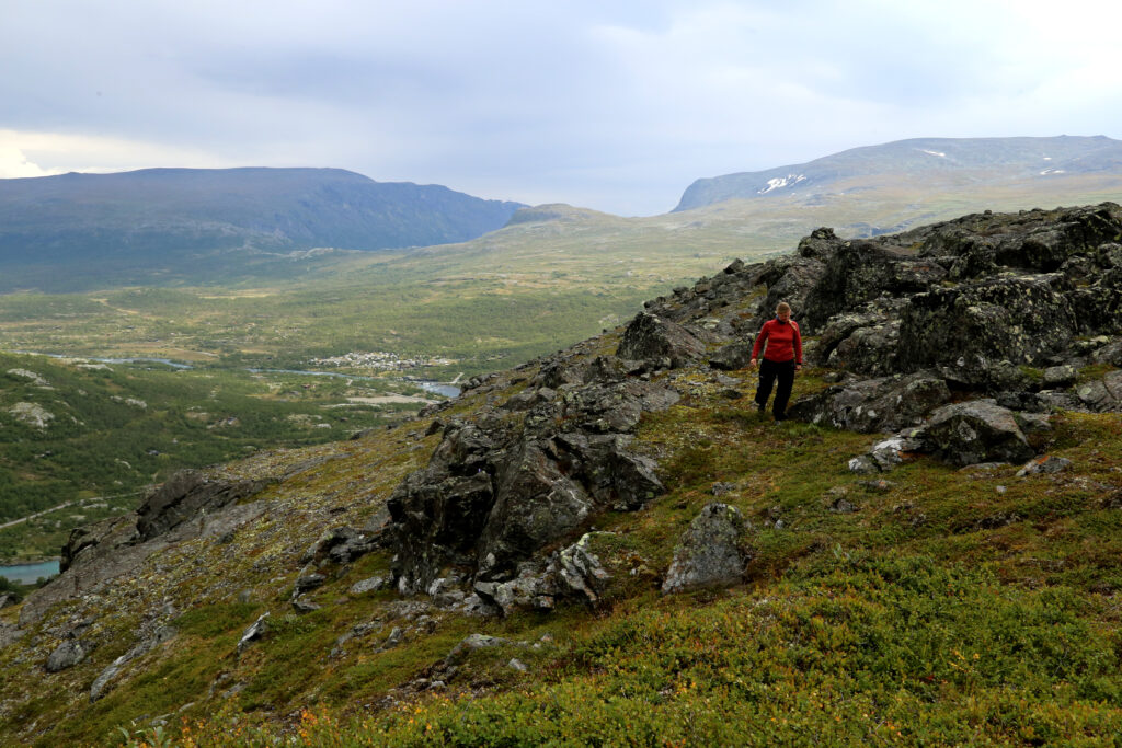 Opp er greit nok. Start ved Valdresflye, ved Leirungsvegen, grusveien inn mot hyttene og setrene ved Nedre Leirungen, mellom Gjendehøe og Knutshøe. Følg grusveien innover, og etterhvert sti rundt og opp på Gjendehøe.