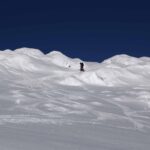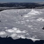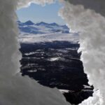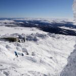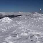 Herfra er utsikt fullstendig i alle retninger. Her er snøen pakket rundt fjellformasjoner og installasjoner og skaper et merkelig snøkledd månelandskap.