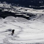 Og etter en lengre pause i solveggen av tårnet på toppen spente vi på oss skiene igjen og fant nedkjøringen. Fantastisk, om du kan kjøre fritt i villsnø. For alle oss andre er det magisk nok (til tross for flere fall). Vi fant ferske linjer i frisk snø, mellom staur og stein, mose og skiturister i motbakke. Vi holdt ryggen (Gråvola) hele veien nedover, mellom de fristende rennene, godt utenfor 30 graders skredutsatt terreng. Vi fant egne spor (rando) og oppdaget nye fall (telemark).