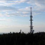 - TV-sendermast for fjernsyn, radiokringkasting, DAB-radio, digitalt bakkenett og basestasjon for helseradio. Det er 37 meter vest for TV-tårnet at det høyeste punktet på Mistberget ligger.