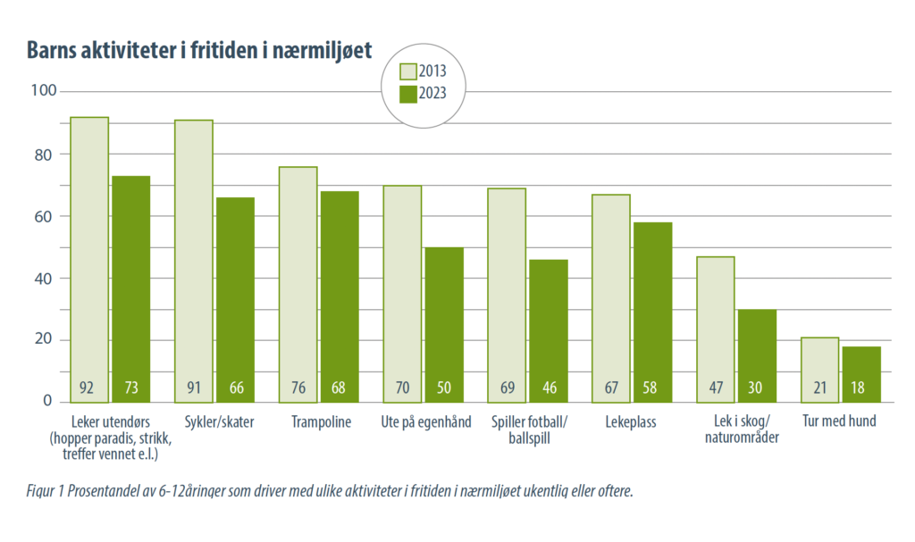 Dette bekreftes av tidligere studier, som har vist en langsiktig negativ trend i barns utelek.