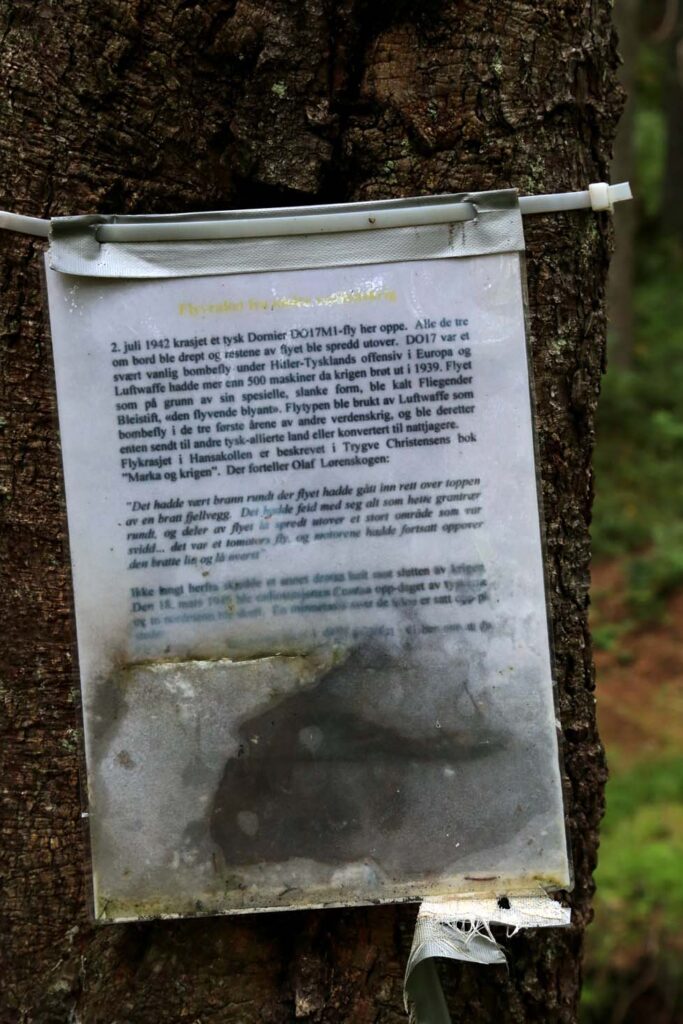 • Restene av et tysk bombefly, ved Hansakollen i Maridalen i Nordmarka.