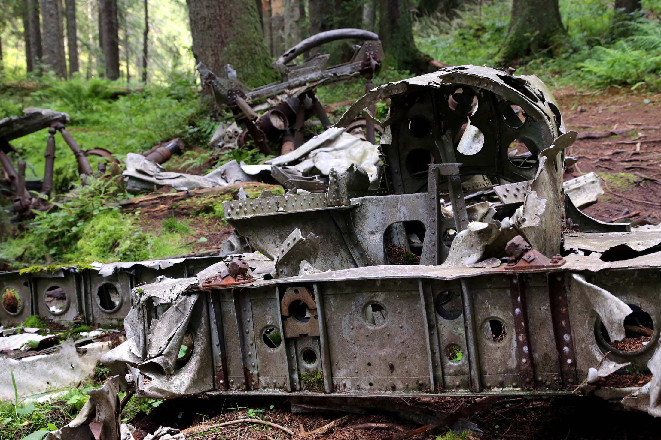 Det er en opplevelse å finne et slikt sted, her ligger vrakrestene etter flyet som styrtet i 1942. Det er kun enkelte deler igjen, noe som ser ut som restene av to motorer, det er stag og forvridde metalldeler, og det er rester av halepartiet, som ser ut til å ligge opp-ned.
