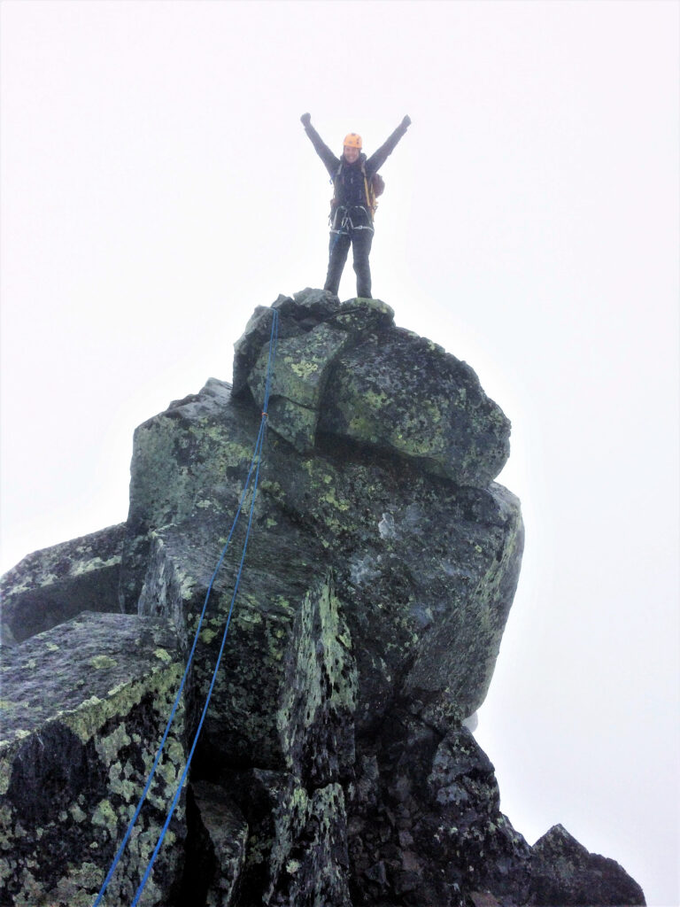 - Nr. 6. Austabotntind. Min første ordentlige klatretur med guide. Klatret i tåke, regn og snø. Men det var ganske så magisk å stå oppå den lille toppsteinen som utgjør toppen av dette vakre fjellet.