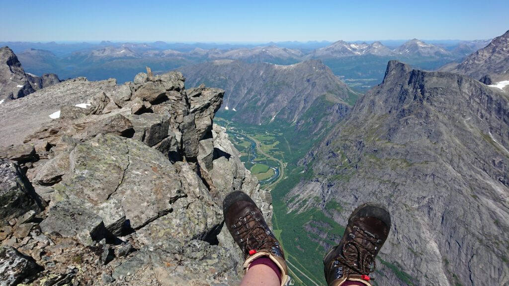 - Nr. 10: Delt mellom Gaustatoppen og Breitinden. Gaustatoppen: En enkel topp å nå, og litt morsom klyving ut til høyeste punkt. Og å få oppleve den uten noen andre i helt skyfritt vær, var helt magisk. Breitinden: Høyeste toppen i Trolltindane-massivet i Romsdalen, 1797 moh. Den turen var helt vill, hvor vi så fjell, fjord, dal og hav. Og 1700 høydemeter rett ned i Romsdalen.