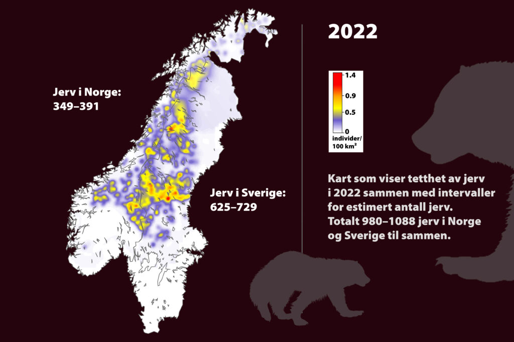 Milleret er forsker ved NMBU og førsteforfatter av rapporten. Den viser at det nå er 625–709 jerv i Sverige og 349–391 i Norge. Totalt er det mellom mellom 980 og 1088 individer.