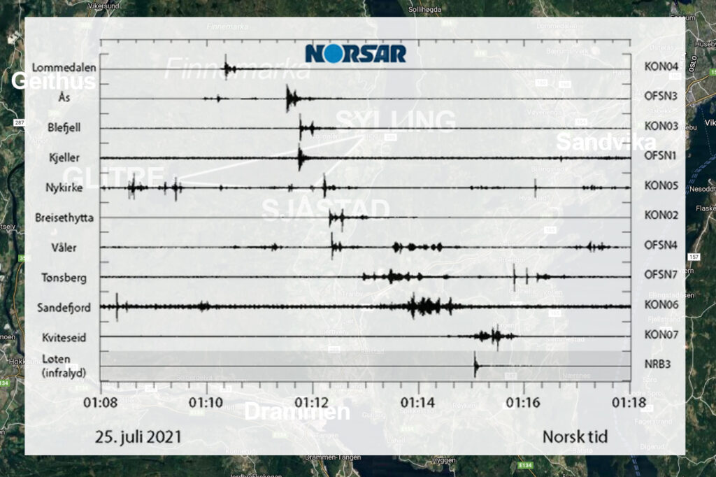 Mellom klokken 01.10 og 01.15 registrerte flere av Norsars stasjoner signaler som meteorens bulder ga fra seg.