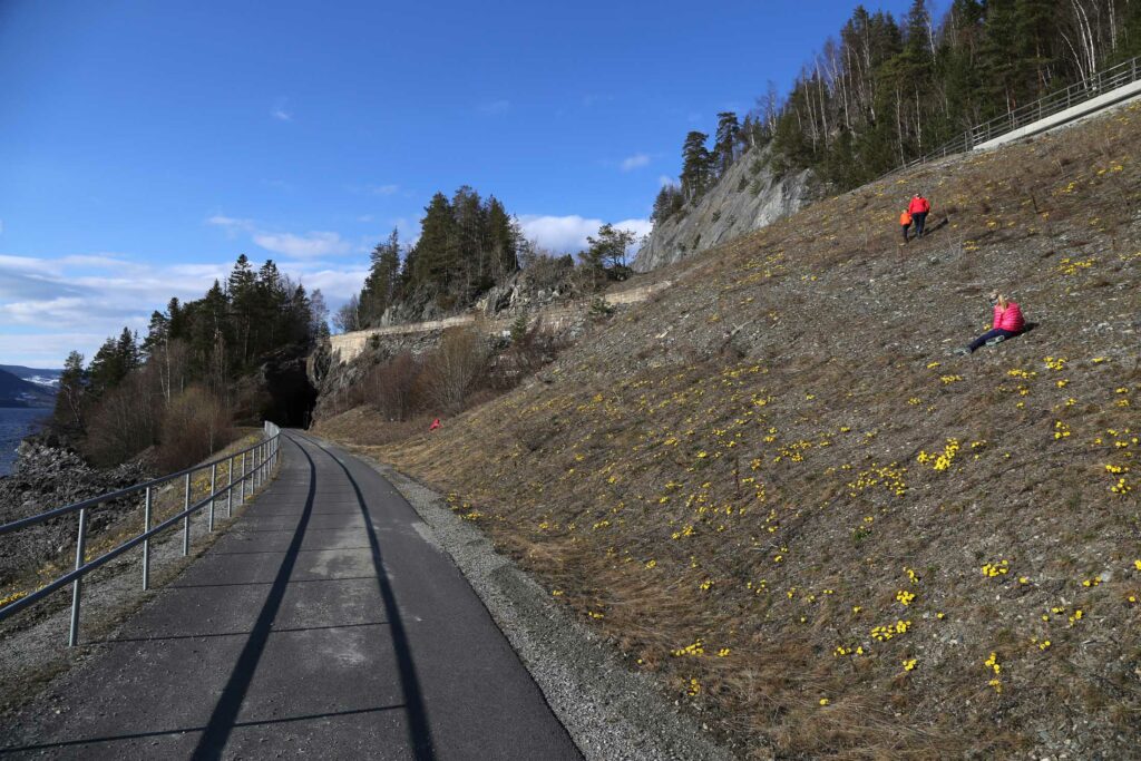 Kommer du sørfra, fra Minnesund, vil du sykle forbi flere badeplasser og gjennom en spennende tunnel, som nå er tilrettelagt for gående og syklende. Kommer du nordfra, fra Stange og Tangen har du syklet på fylkesveien, og deretter på nye Mjøstråkk og videre til vokterboligen.