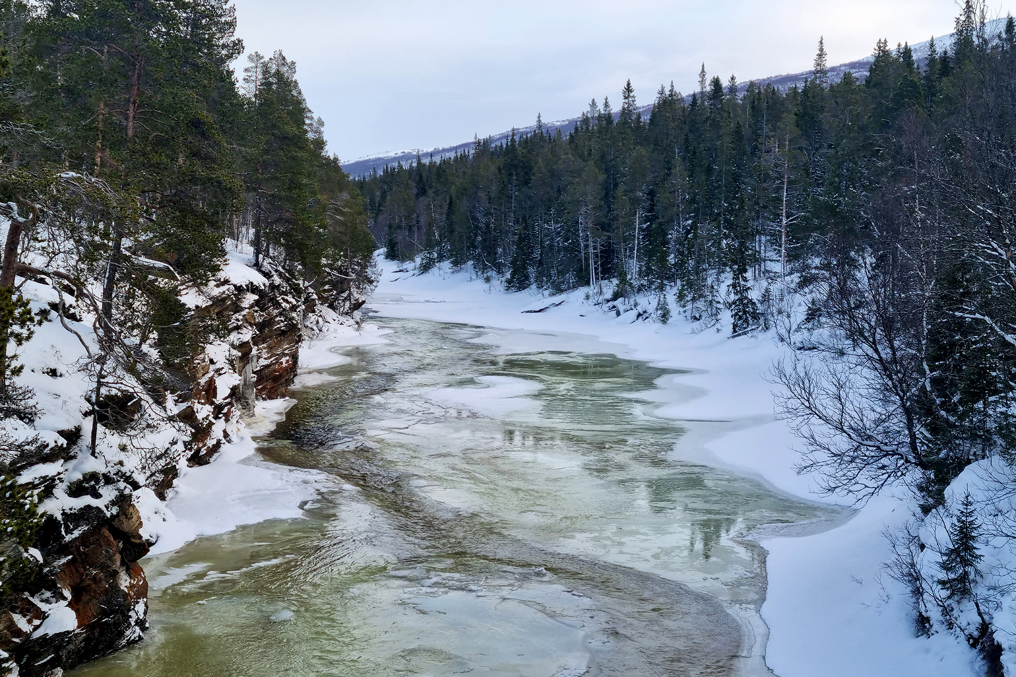 I Nordreisa er det mye snø i lavlandet. Ved Caraelv er det målt rundt 1,85 meter ved Sieimma.