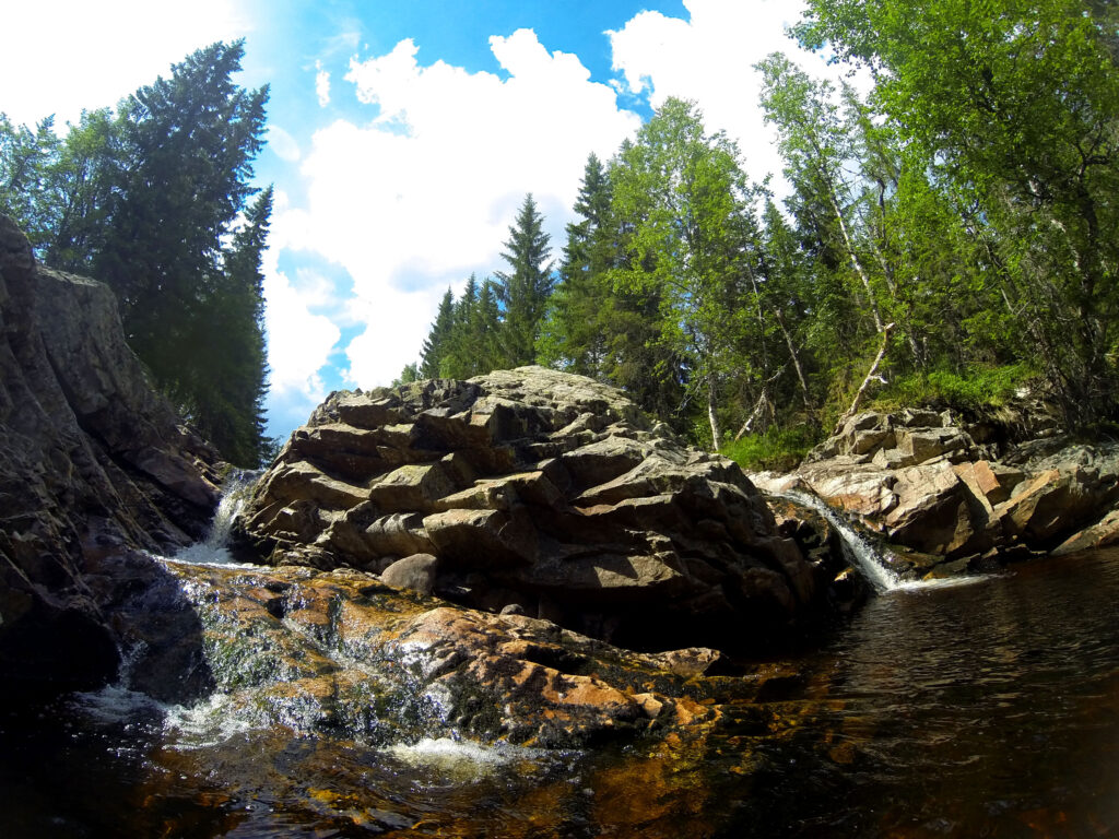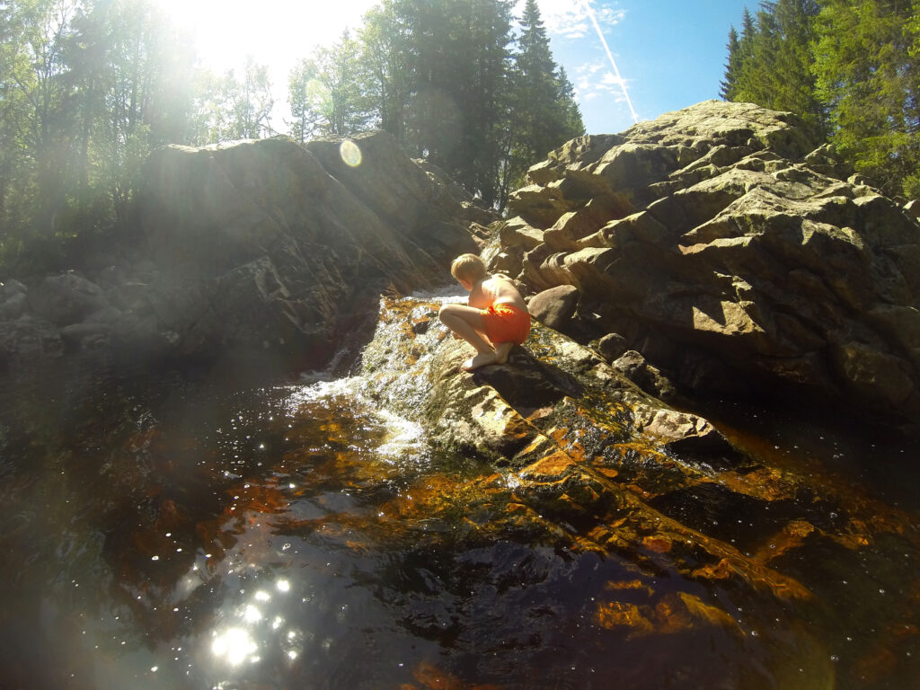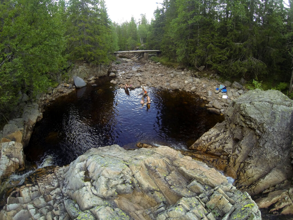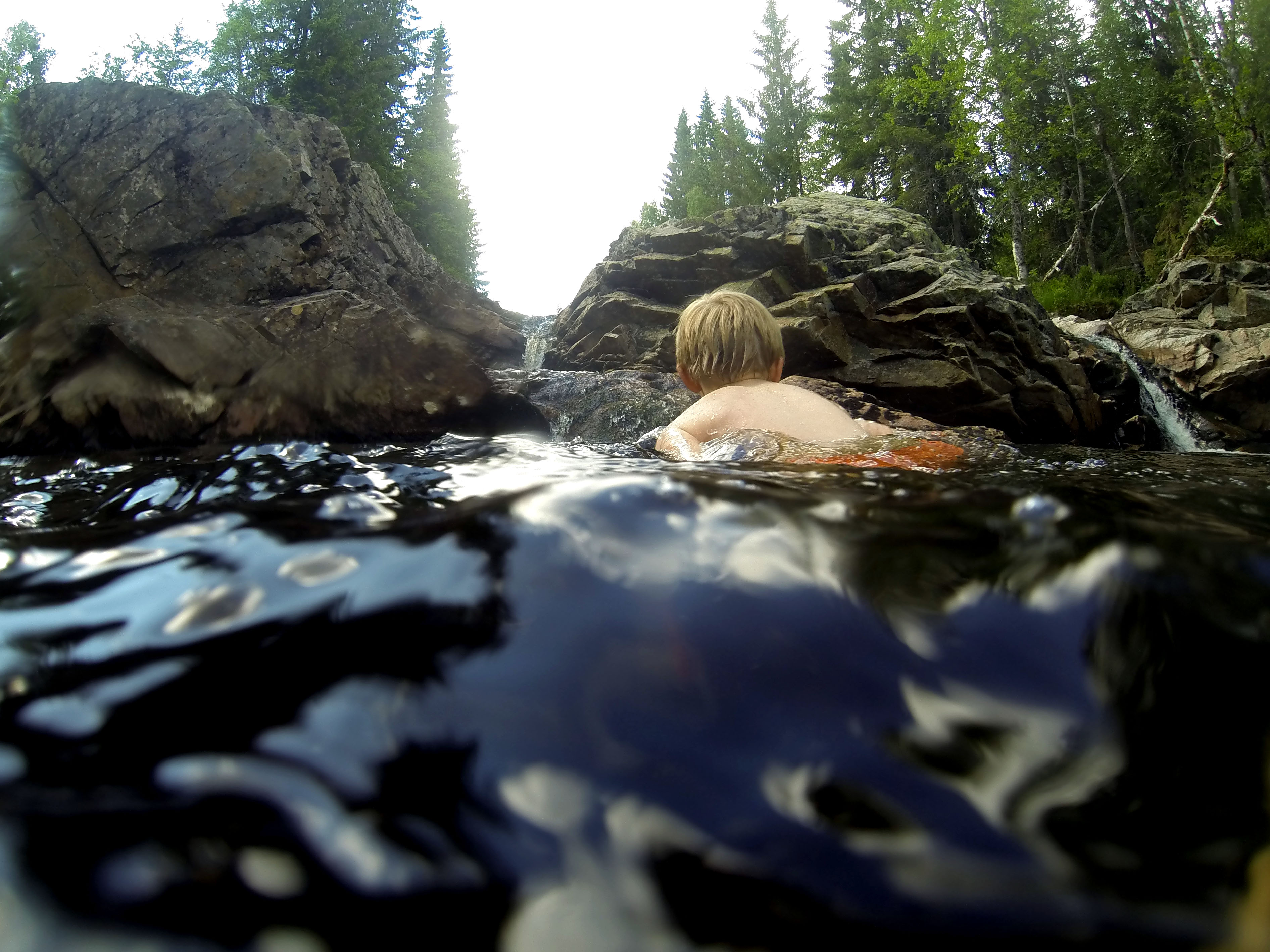 Det er flere badekulper i Øksna, her fra kulpen ved det lille fossefallet ved utgangspunktet for turen.