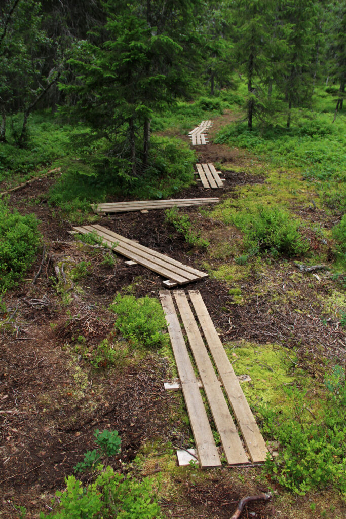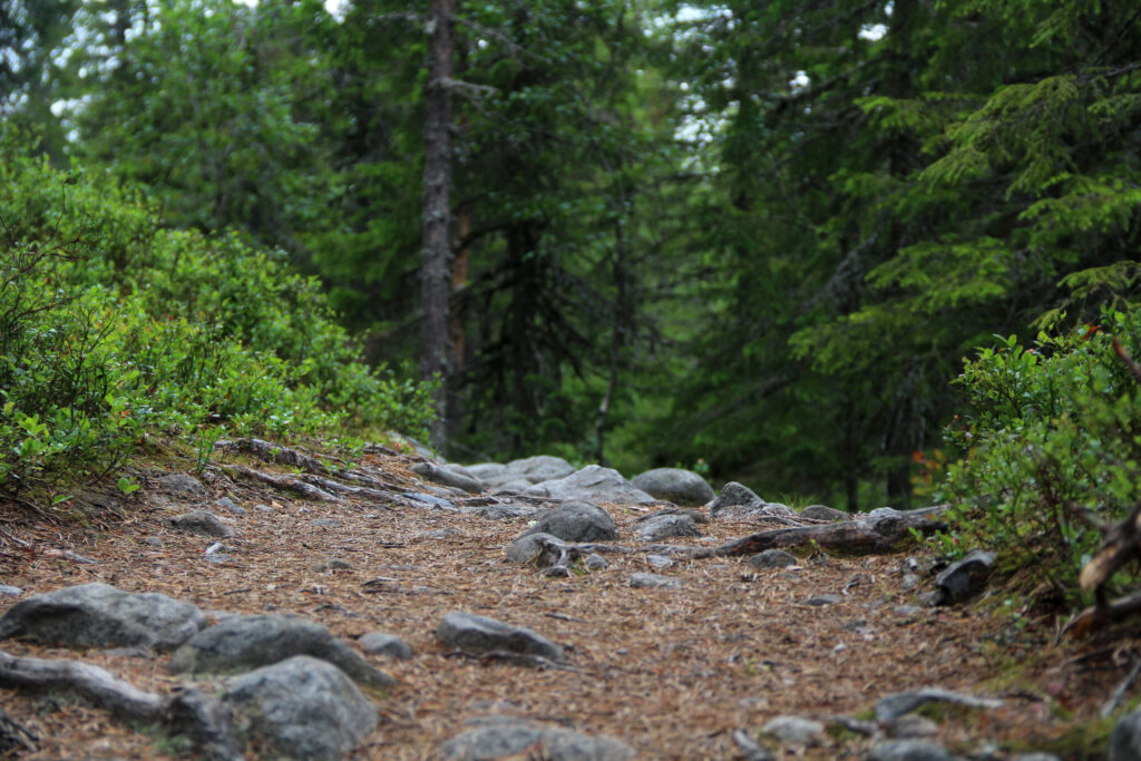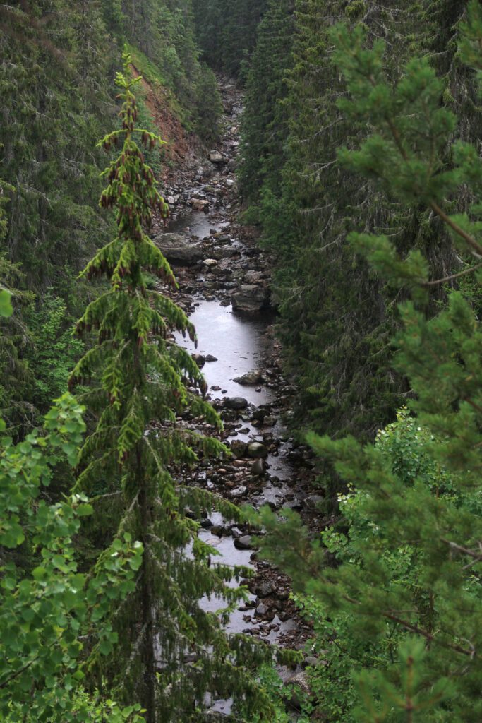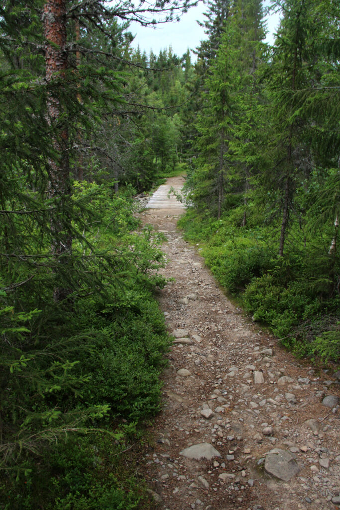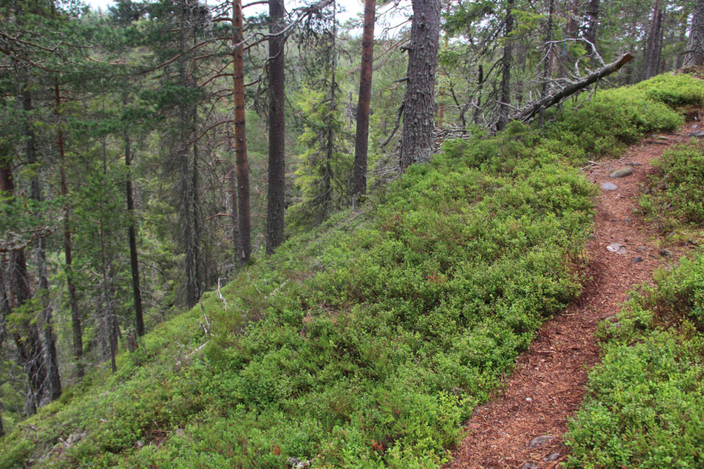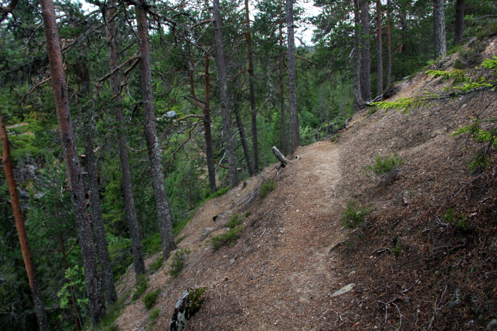 Stien er forholdsvis lettgått, den bukter seg fint fram i terrenget og tidlig er det muligheter for å få utsikt ned i juvet.