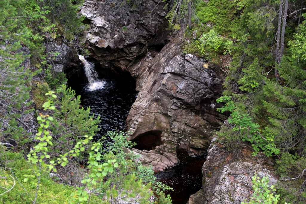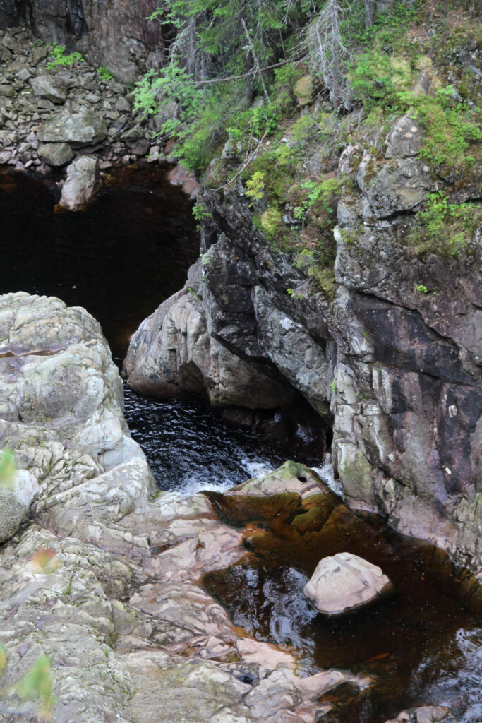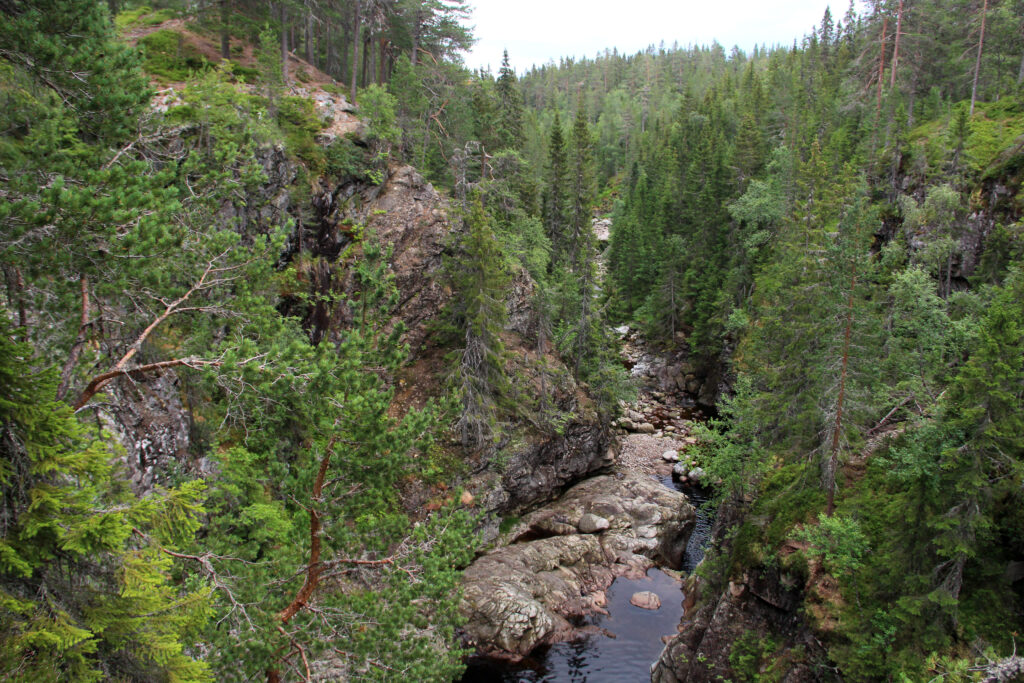 Parti nedenfor øvre fossefall i juvet, som elva Øksna har gravd ut.