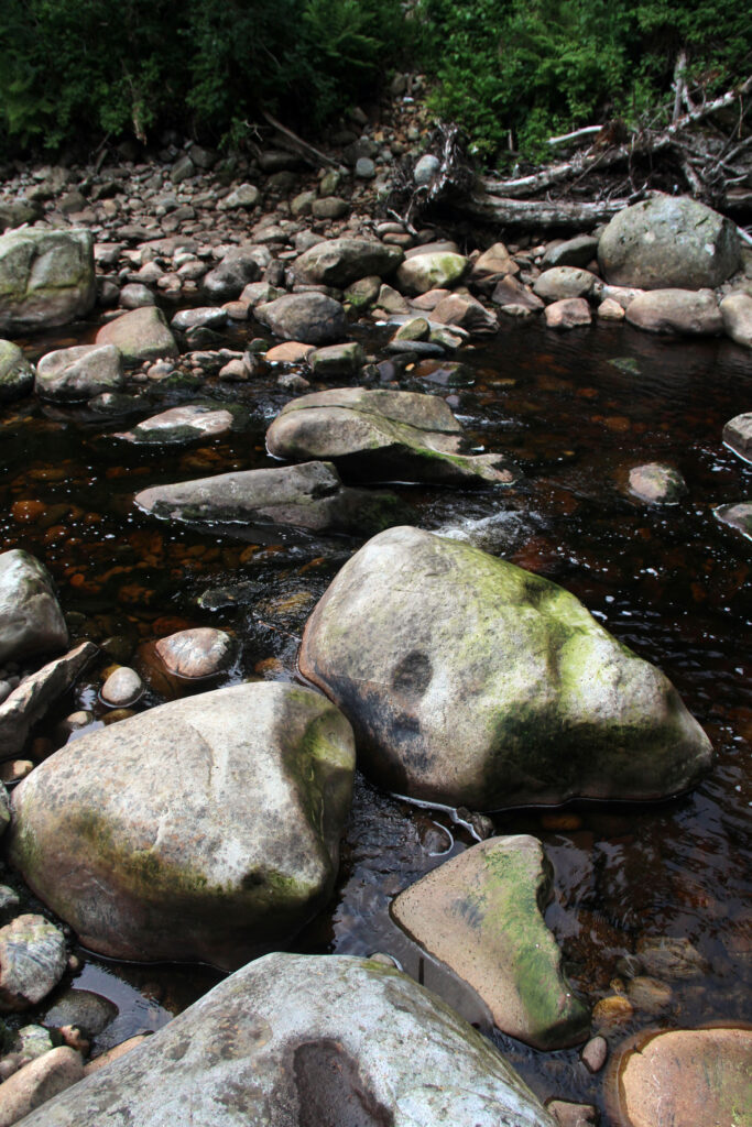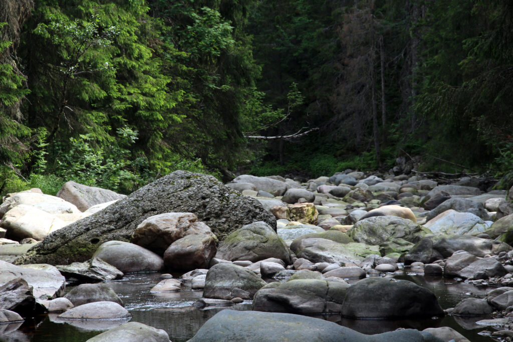 Flyttblokk midt i elva: Uten å ha spesifikk kunnskap til geologi, ser steinen til venstre midt i bildet ut til å passe dårlig inn i bildet. Kan det være en av mange flyttblokker isen har fraktet sørover?