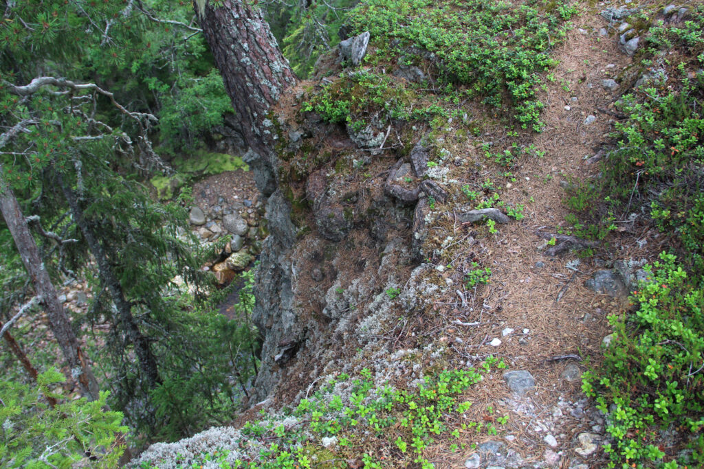 Stien går flere steder helt på kanten av juvet, hvor erosjonen er godt synlig. Vær forsiktig!