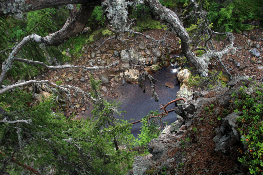 Langt ned: Fra kanten av juvet er det langt ned i bunnen. Selv om stiene rundt Korpreiret er tilrettelagt er det ingen sikring ut mot canyonen. Dette er vill natur.