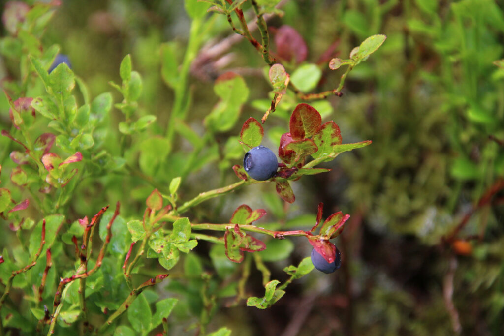 Blåbær: Det er frodig i området rundt Korpreiret, og gode forhold for blant annet blåbær.