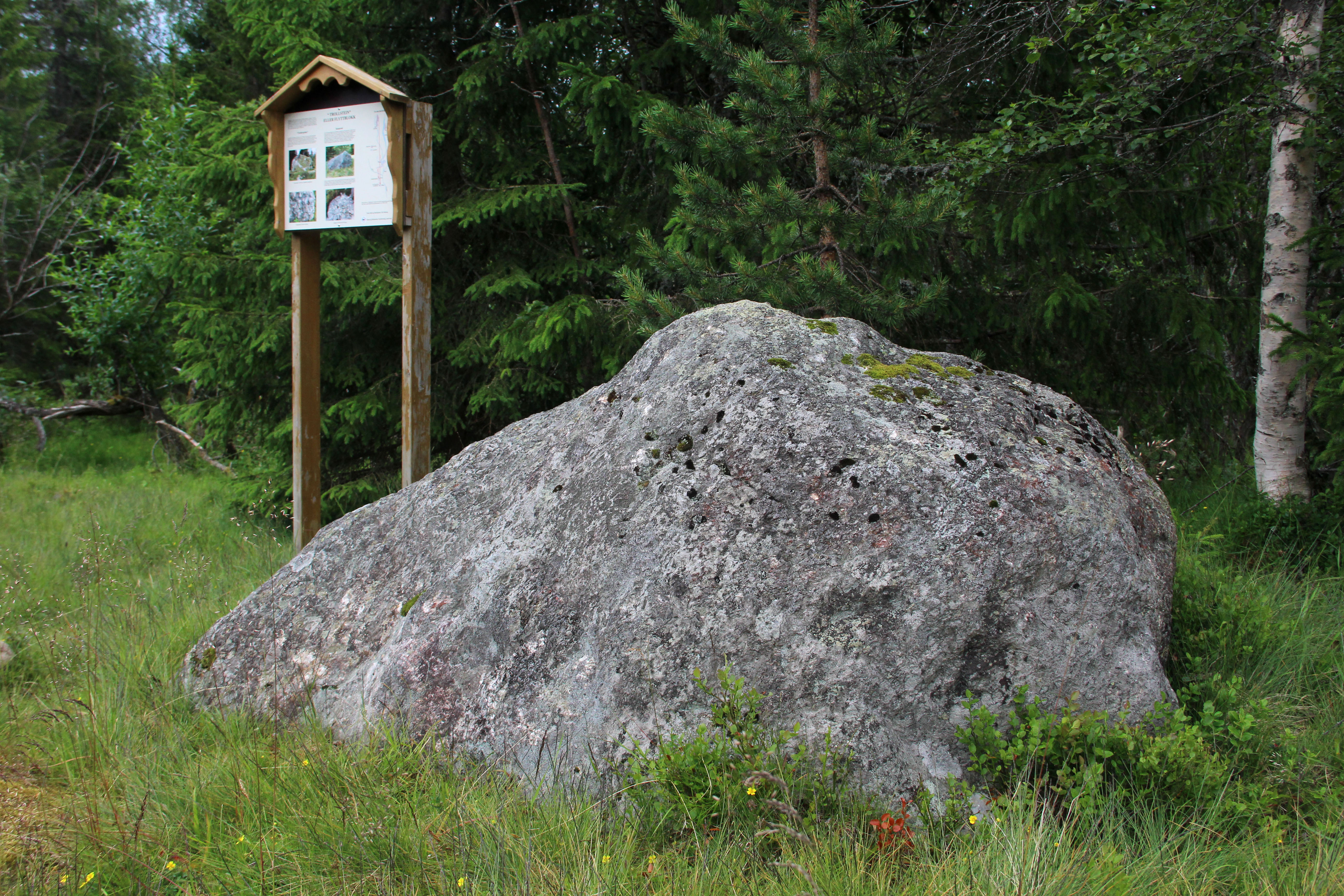 Rett før du kommer til parkeringsplassen ved Korperud passerer du en flyttblokk, som har reist med isen helt fra Koppang.