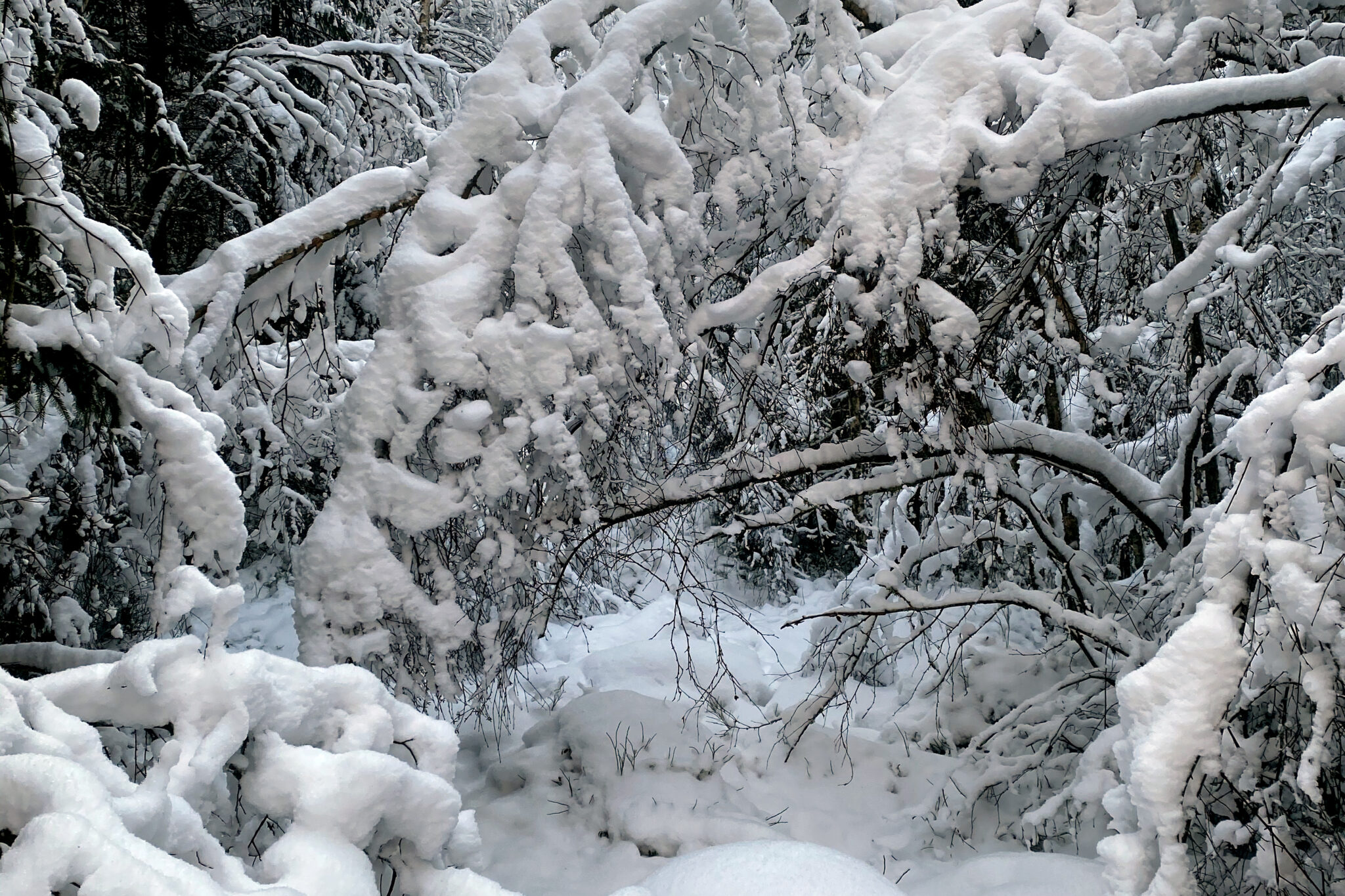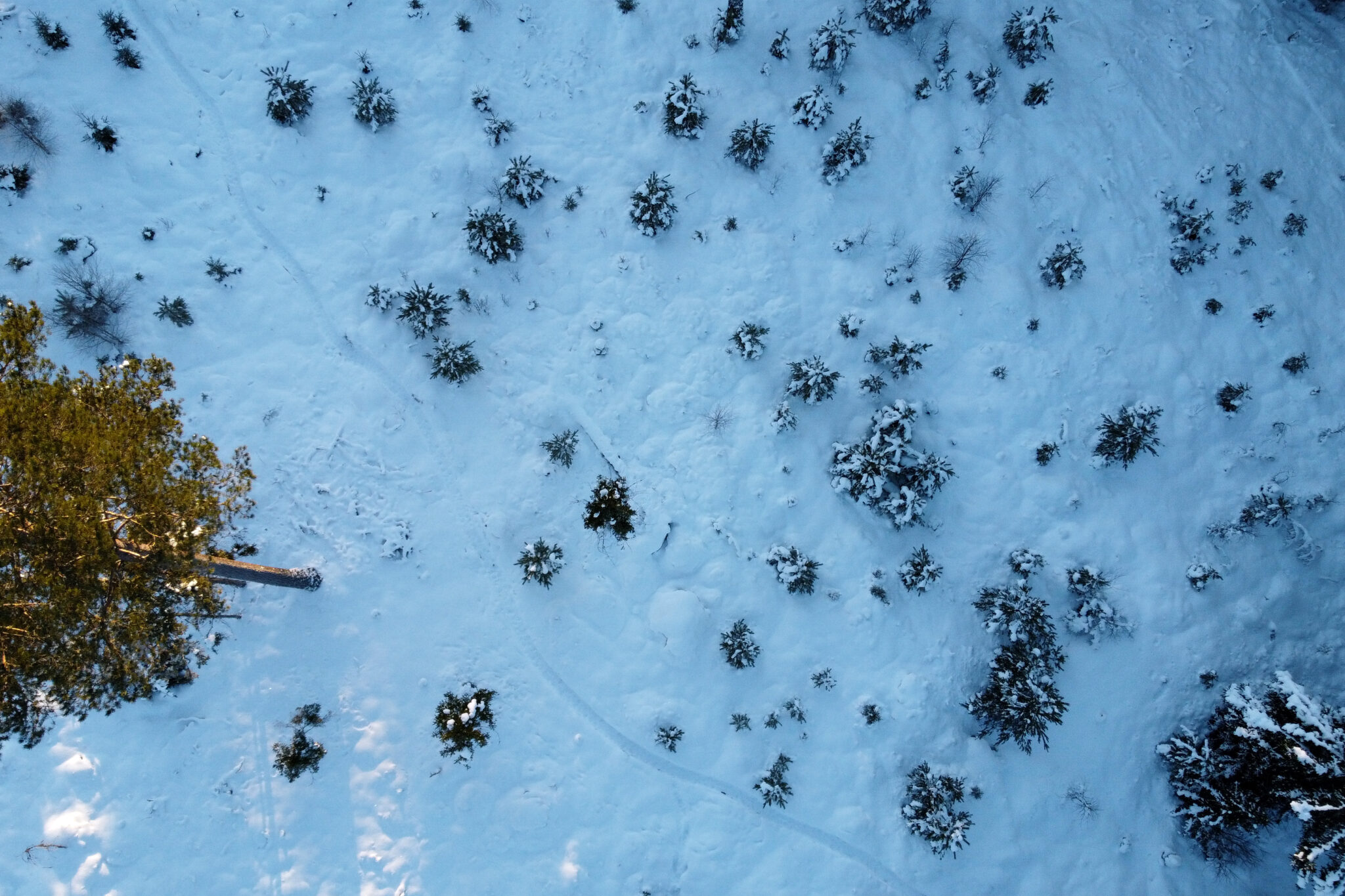 I denne skogen er det mange stier. Disse stiene er om sommeren brukt av mennesker. Om vinteren er det dyrene som tråkker spor.