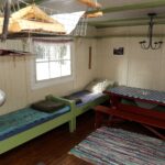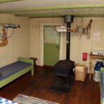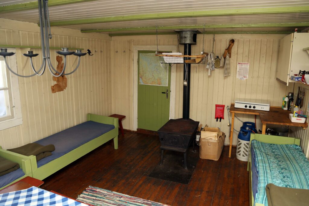 Hytta er utrustet med det man trenger i kjøkkenskapene, og noe utstyr i tillegg og informative oppslag. Ønsker du en natt her må du ha med det meste selv, men du vil finne roen i et flott skogsområde,. Trolig vil du være alene, for her er det ikke mange registrerte overnattingsdøgn.