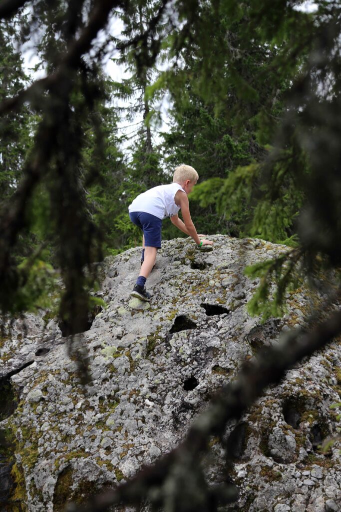 TIL SNIPPKOIA: Konglomeratet Torshovgråen – en flyttblokk som tidligere var knyttet til folketroen, med hekseprosesser og ondskap i dette området. Steinen har et hull på toppen som alltid er fylt med vann, selv i de varmeste sommerperioder.