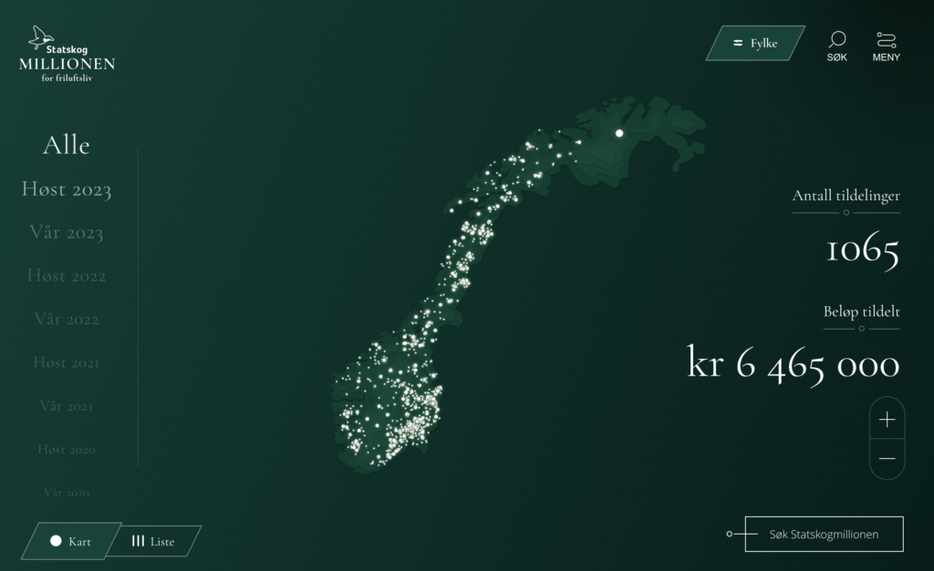 150 prosjekt og tiltak vil få tilsagn om støtte før sommeren i år. Alle tildelinger, fullstendige retningslinjer og søknadsskjema er tilgjengelig på www.statskog.no/statskogmillionen/.