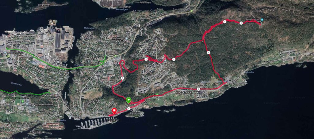 Med et snev av nysgjerrighet finner man turopplevelsene – i ukjent terreng kan de være gode eller plagsomme. Denne endte med noe midt imellom: Det var en fantastisk tur på tilrettelagte stier til et flott utsiktspunkt, men ned igjen rotet vi oss inn i krattskogen og bratthellinga på en måte som nok ikke imponerer lokalbefolkningen. Vi endte med å backtracke, så litt freestyling før vi endte med en mellomting av «håpe-på-det-beste» og «la-det-stå-til» for å finne veien ut. Florø er ikke stor, heller ikke de skogkledte åsene på Brandsøy hvor vi rotet og brukte tid vi ikke hadde før neste programpost.