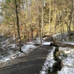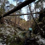 Og for å ha sagt det med en gang: Livet er virkelig godt når du er på et nytt sted og litt tilfeldig velger et punkt og kryper ut av asfaltjungelen og finner frodig skog med flotte stier som slynger seg innover mot sherpa-steintrapper du ikke visste fantes, du tar trinnene, det flyter godt, beina responderer og du sklir lydløst innover og oppover i jungelen. Lydbildet spiller fuglekvitter, sildring fra bekken og risling i trærne fra en svak havbris. På bakken: Et lett dryss av nysnø, et slikt dryss som skaper stemning og gir deg muligheten til å sette dagens første synlige spor mens du klyver oppover som en ekte førstebestiger (nysnø er fin sånn, den skjuler andre spor og gir deg følelsen av å være først).