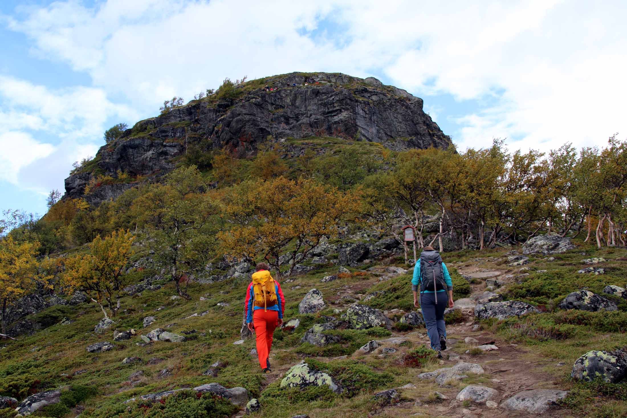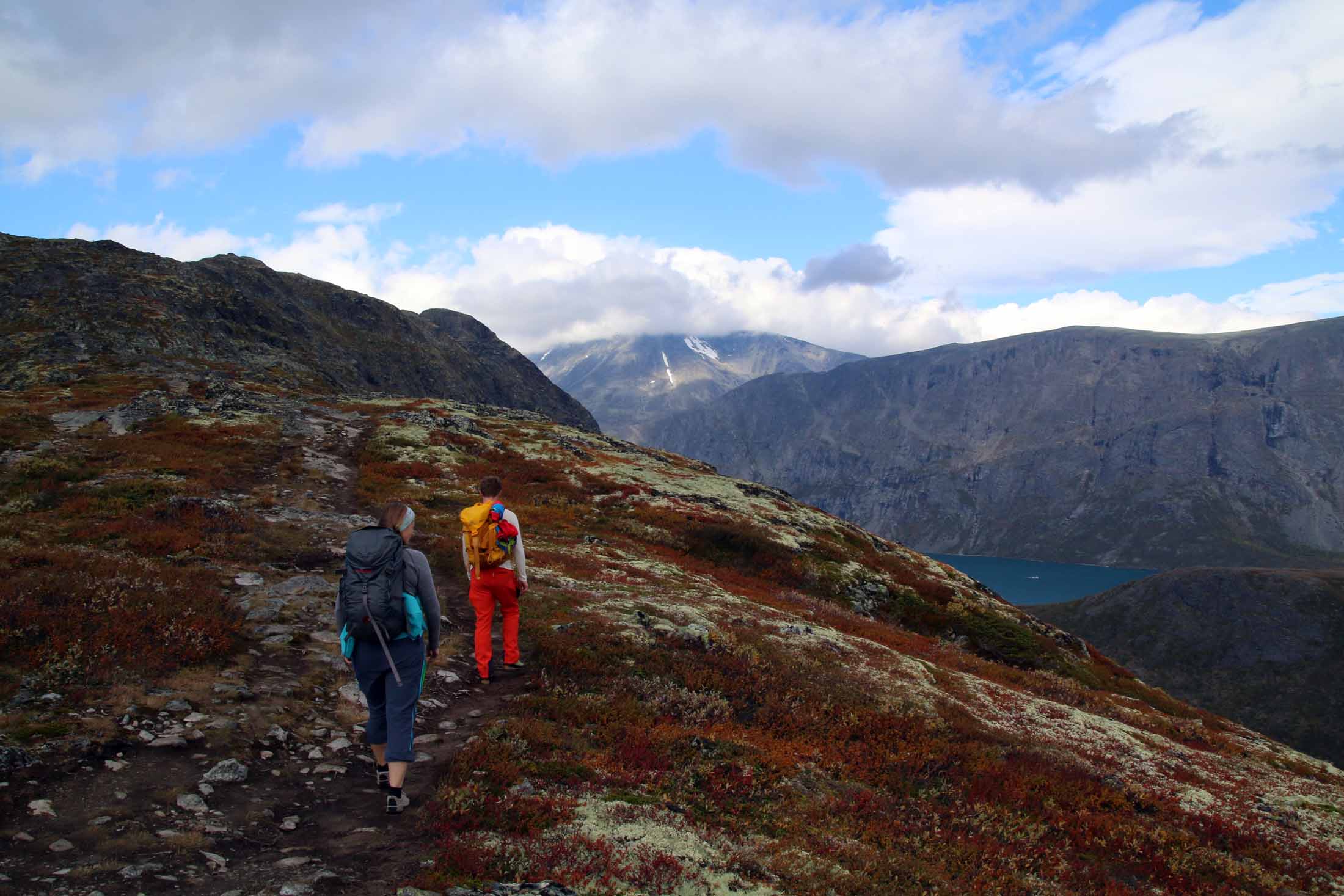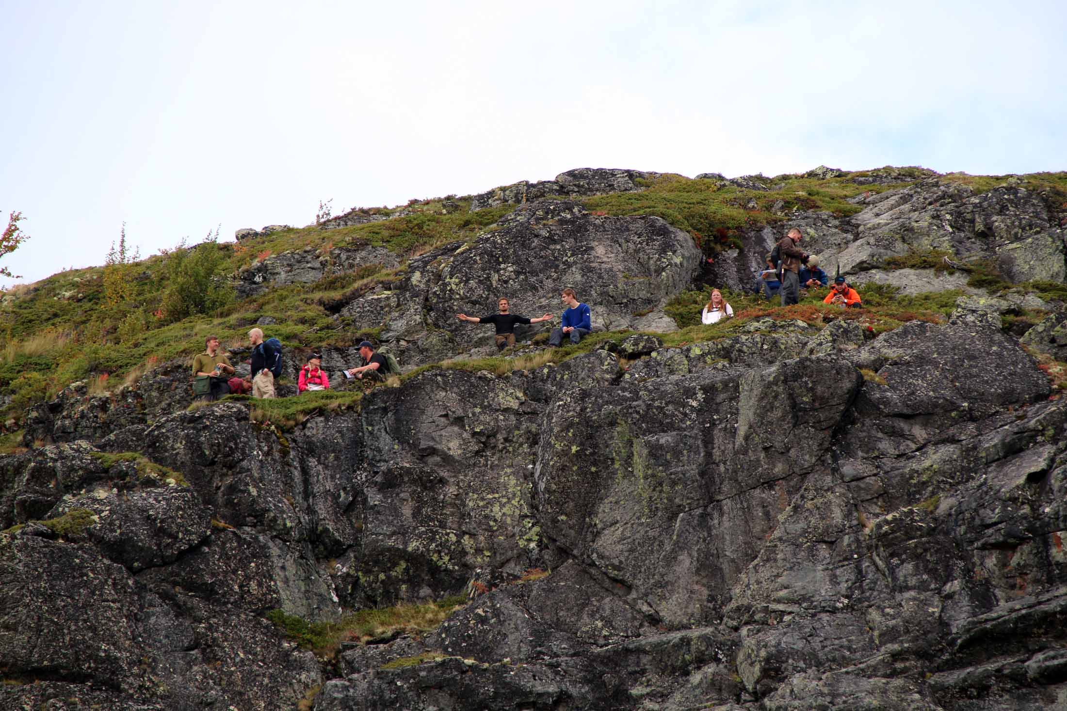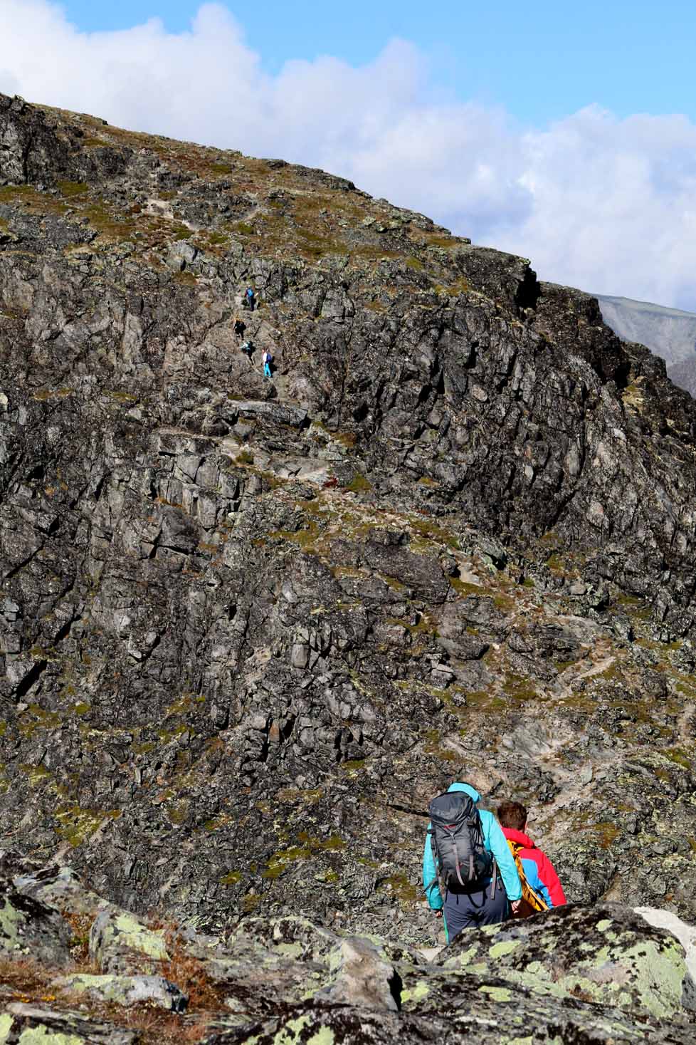 De ser fjellvante ut – og vet tydeligvis om en «snarvei» opp på eggen. De er et godt stykke bak oss, så vi kommer aldri i prat med dem.