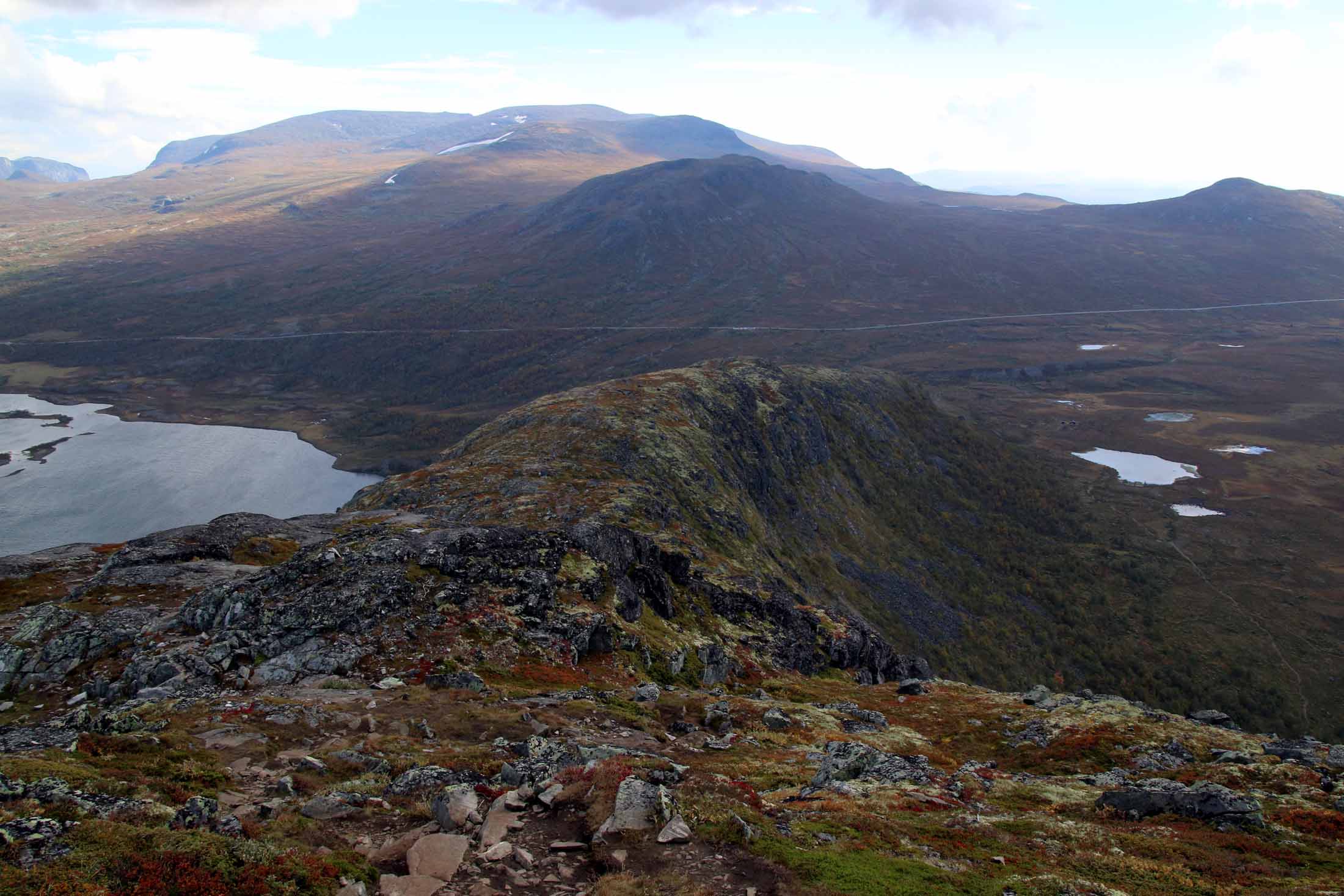 Det er et litt luftig punkt helt i starten, og et litt luftig parti før toppen, ellers går man på en bred og fin rygg.