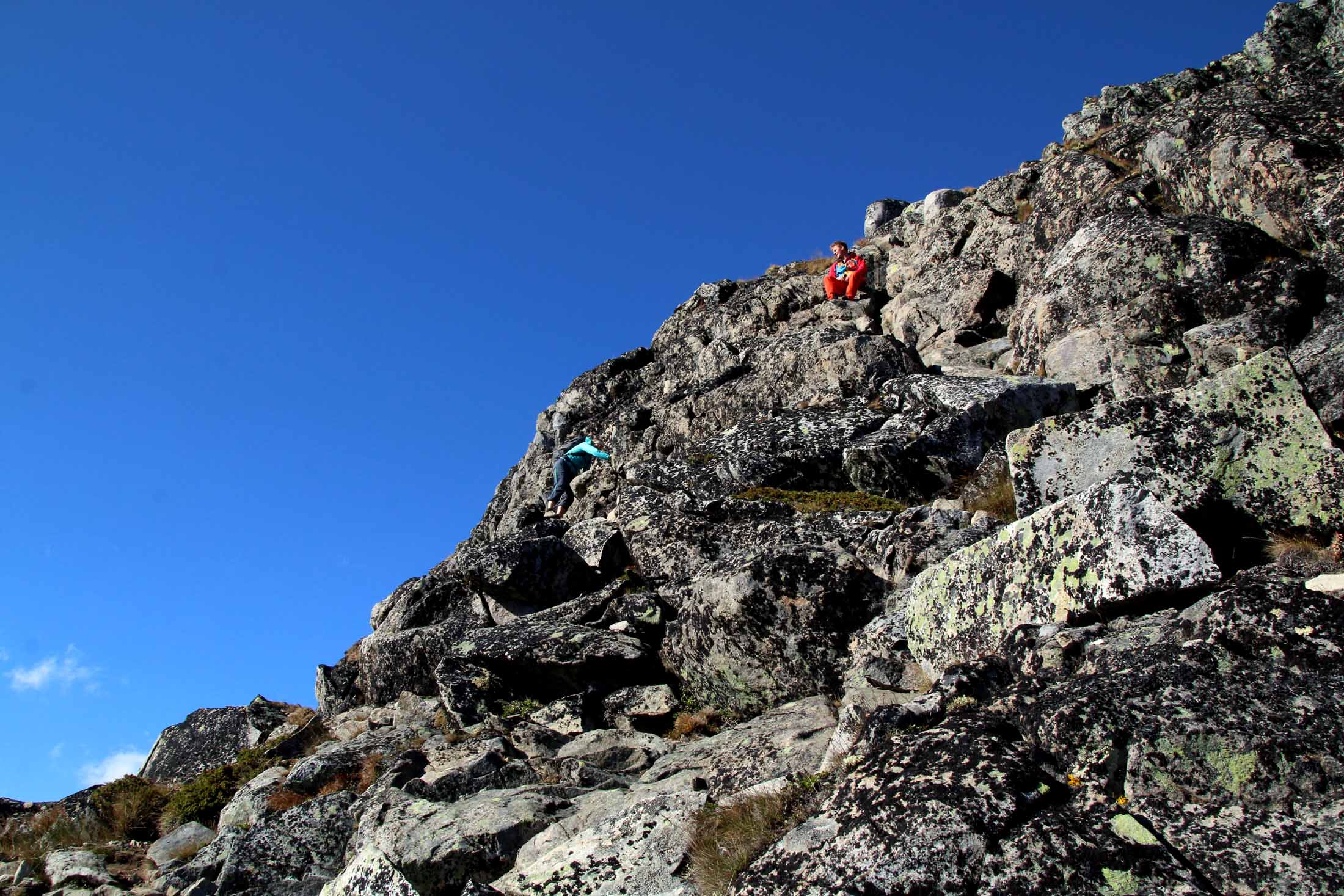 Det er lett klyving, men luftig nok. Er man ikke fokusert er det mulig at det går helt galt, har man høydeskrekk er det her man kjenner det.