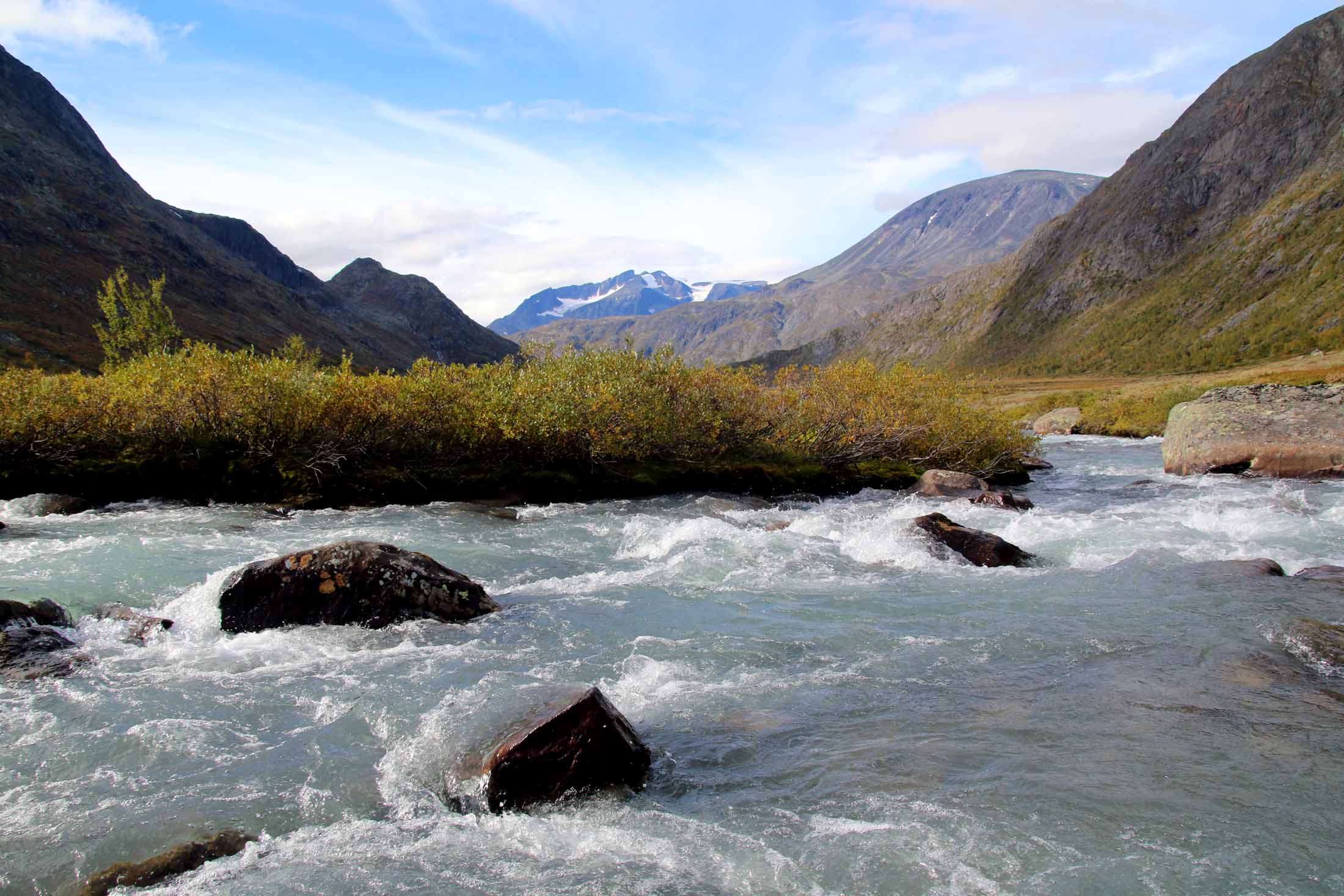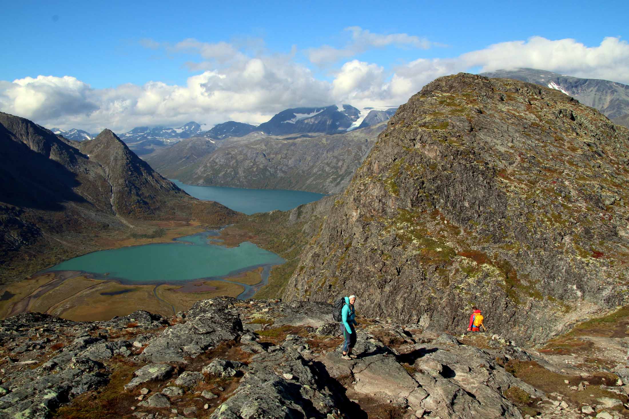 Vi var tre som gikk turen i september 2016, under Fjellfilmfestivalen ved Gjendesheim. Været var godt, men skyene dekket Besshøe 2258 meter over havet. Knutshøe lå godt under skylaget, og værprognosene varslet stabilt vær hele dagen.