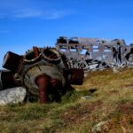 Det tar litt tid å forstå synet: Det er et helt fly på åsryggen midt imot. Det er restene av en nødlanding i oktober 1942. I møtet med historien går tempoet ned, og de siste meterne fram tas helt naturlig skritt for skritt, rolig, i respekt for dramaet som utspant seg her.